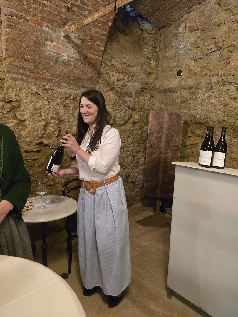 Sehr charmant begrüßte Viktoria Sturm die Gäste in der Südsteiermark und bat sie nach einem ersten Umtrunk in den historischen, 250 Jahre alten Weinkeller. (Foto Hedi Grager)