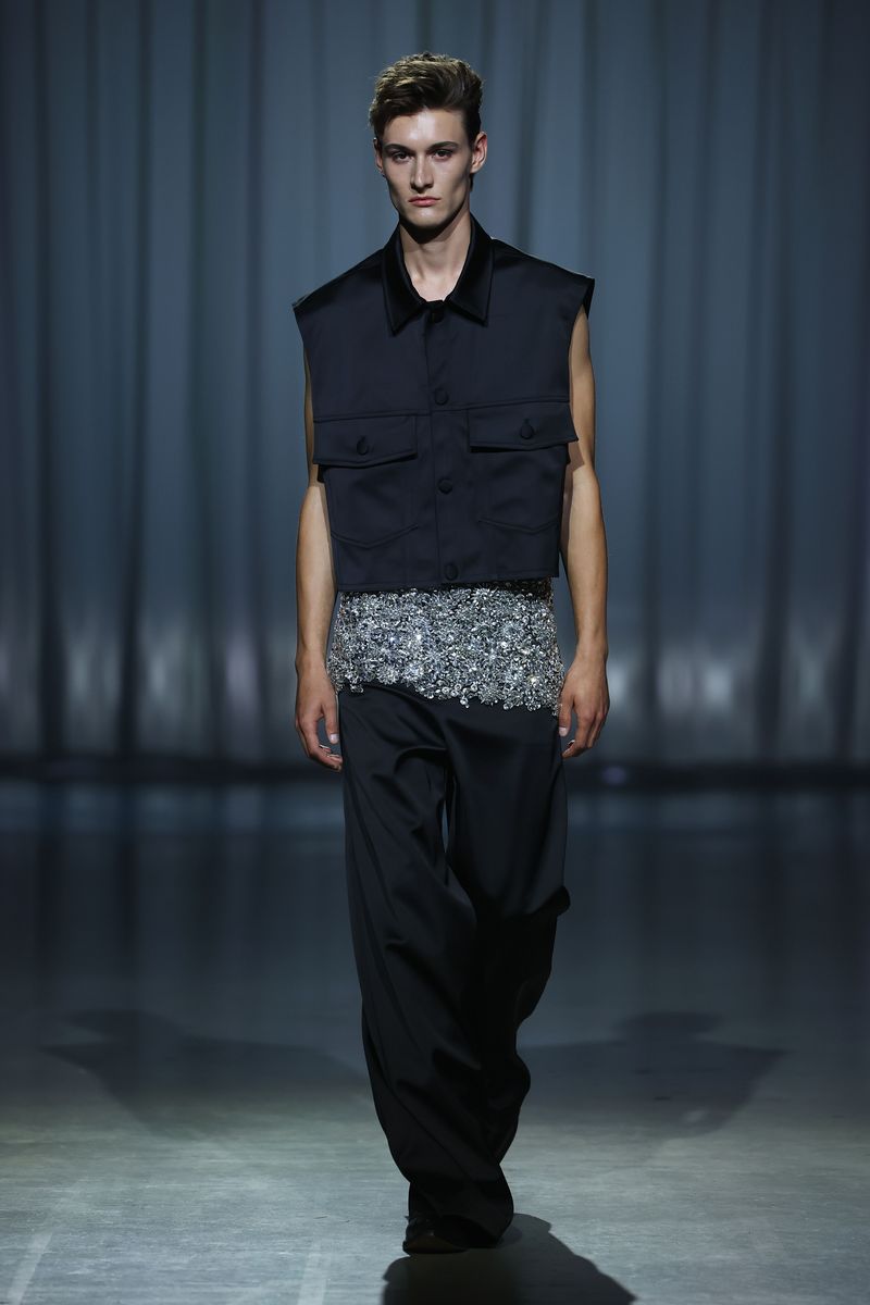 Während die Show bunt begann, in verschiedenen Blau- und Rottönen, mit Silber und Gold, waren die Looks zum Finale ganz in Schwarz gehalten. Für die Show zur Berlin Fashion Week im Juli 2025 mischte Kilian Kerner zum ersten Mal Styles von Kilian Kerner Berlin mit zehn Pieces von Kilian Kerner Senses.