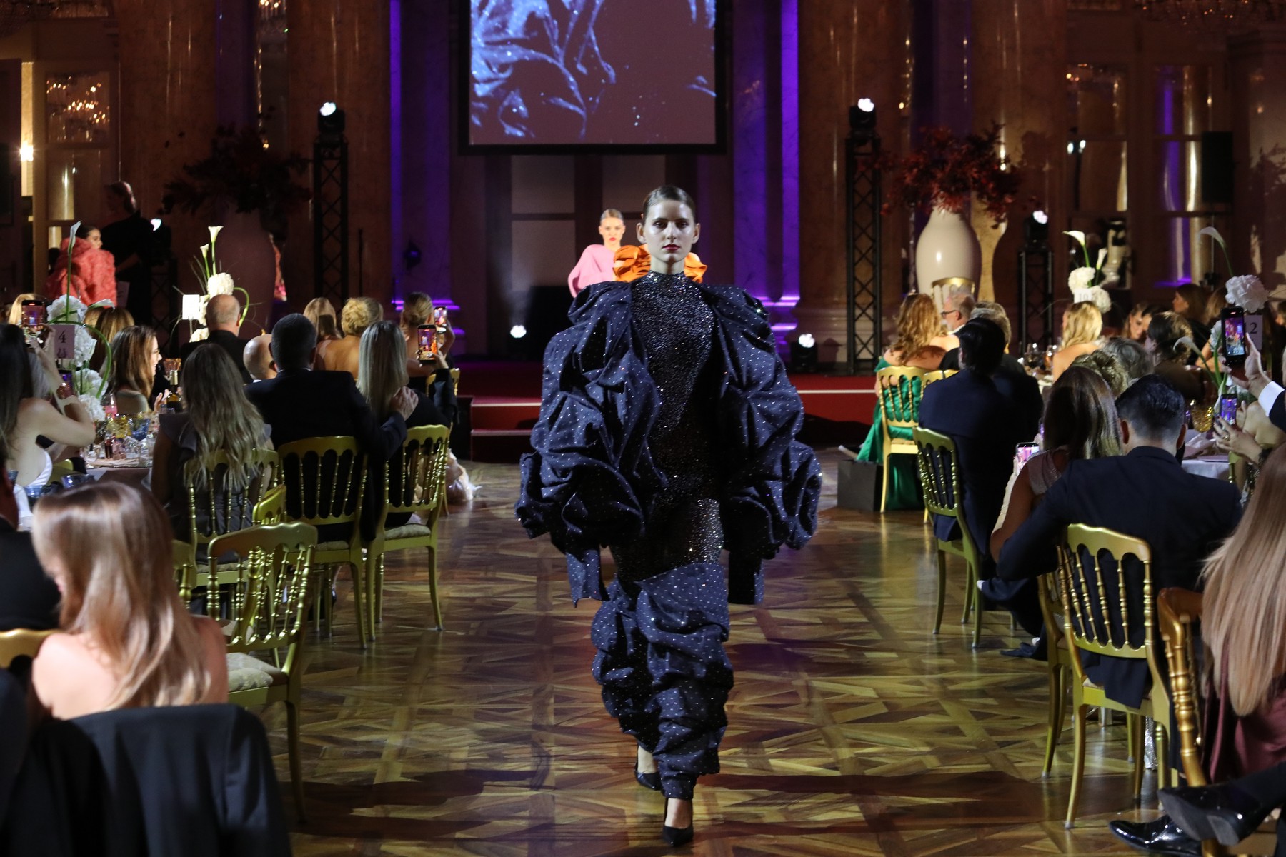 Ein besonderes Highlight des Abends war die Runway-Präsentation von Kilian Kerner. Anlässlich seines Awards zeigte er 15 Signature-Looks seiner aktuellen Kollektion – ein stilistisches Statement zum 15-jährigen Bestehen der Veranstaltung.