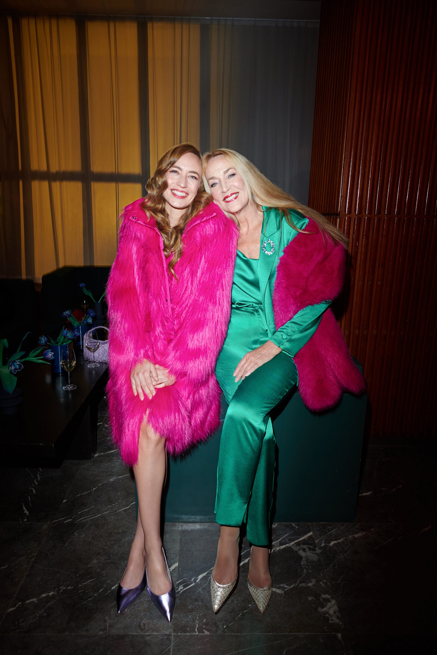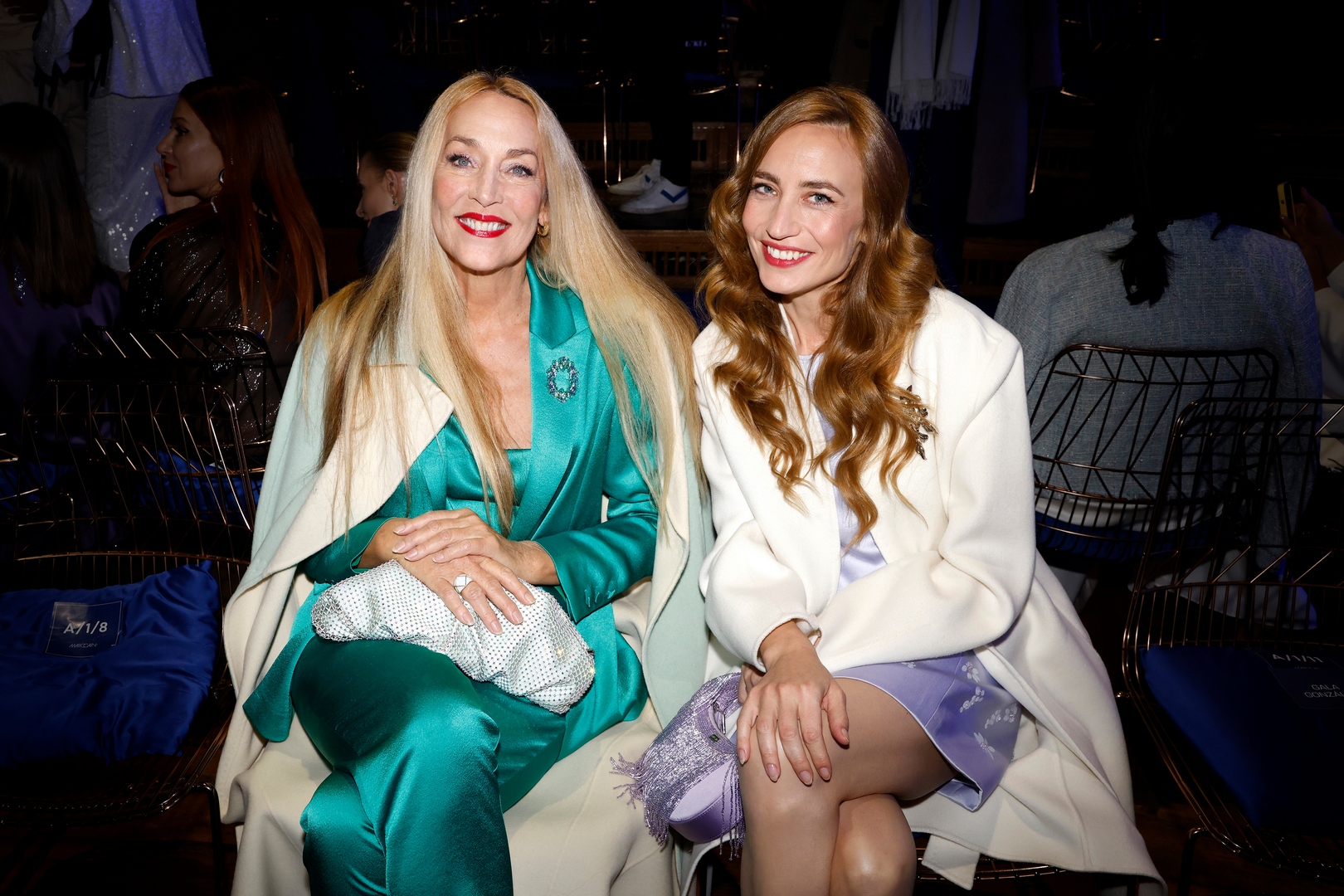 BERLIN, GERMANY – JANUARY 30: Jerry Hall and Elizabeth Jagger during the Marc Cain fashion show „Echo Of Now“ during the Berlin Fashion Week Autumn/Winter 2026 at Funkhaus Berlin on January 30, 2026 in Berlin, Germany. (Photo by Franziska Krug/Getty Images for Marc Cain)