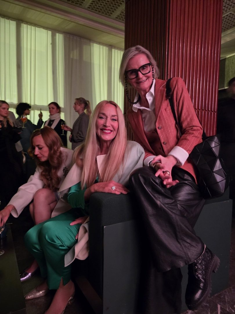 BERLIN, GERMANY – JANUARY 30: Kelly Rutherford, Jerry Hall and Elizabeth Jagger during the Marc Cain fashion show „Echo Of Now“ during the Berlin Fashion Week Autumn/Winter 2026 at Funkhaus Berlin on January 30, 2026 in Berlin, Germany. (Photo by Franziska Krug/Getty Images for Marc Cain)