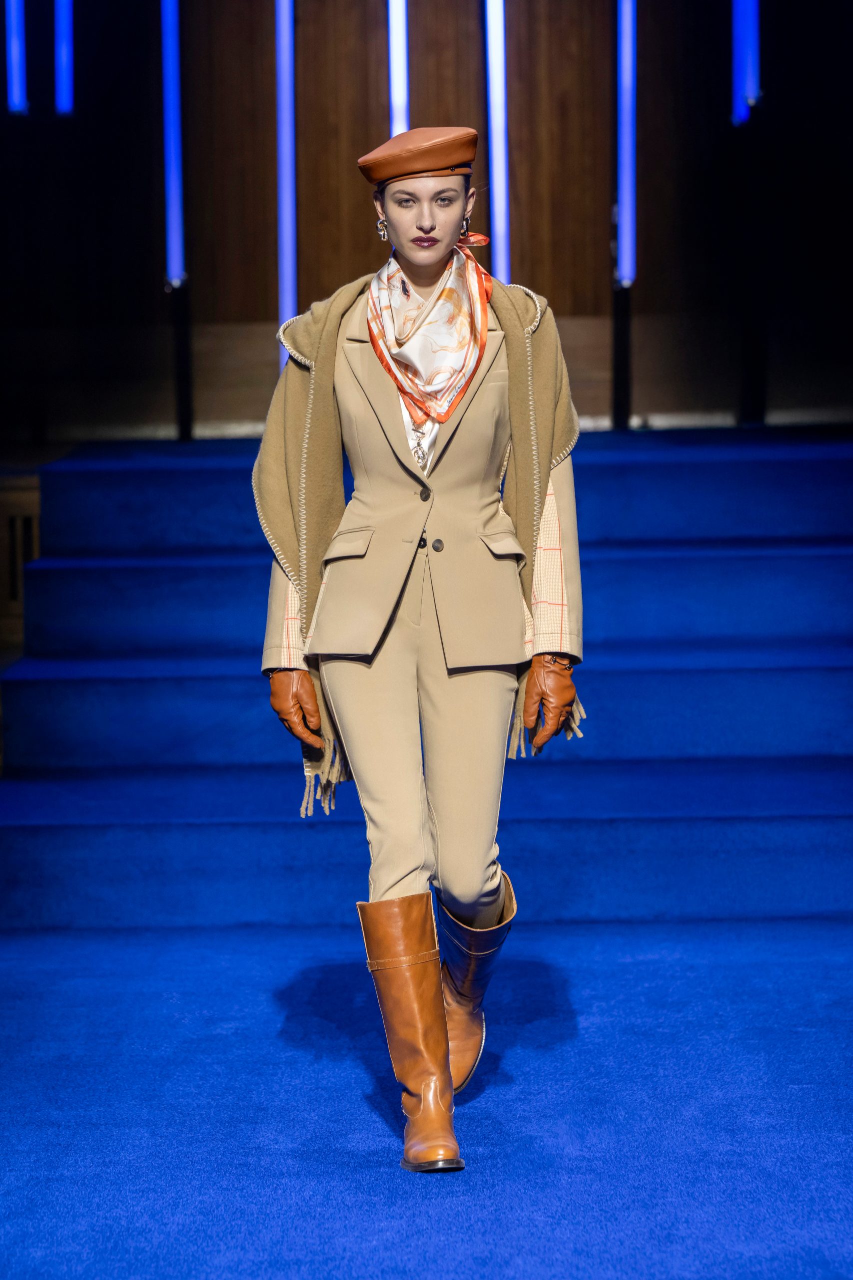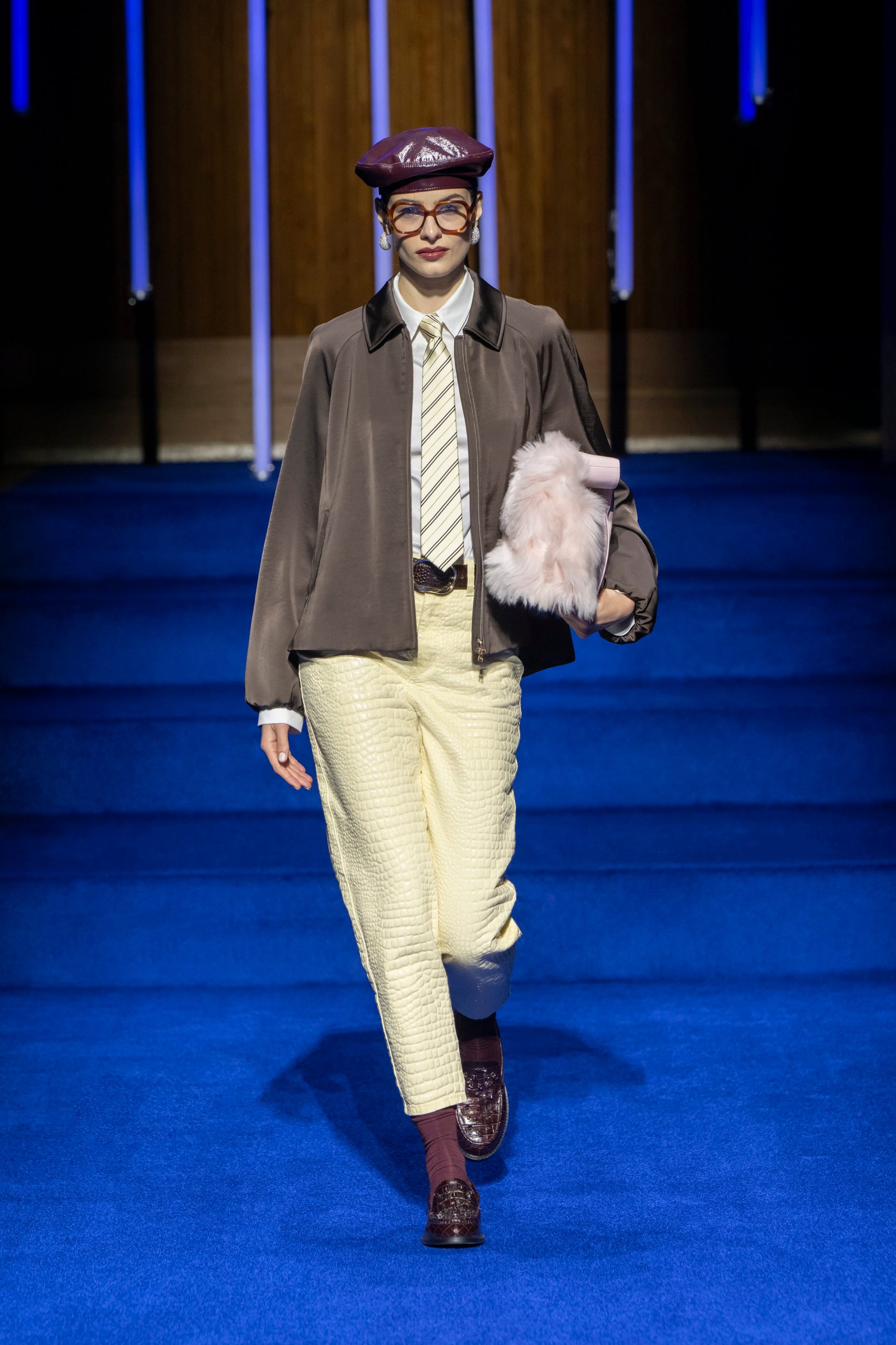 Weiter zeigten sich Animal-Muster wie Gepard und Leo, teils in Schwarz-Weiß oder als Fake Ponyfell, ergänzt durch trendige Paisley-Interpretationen. Accessoires wie Pillbox-Hüte im Jackie-O-Stil, Krawatten, Tücher, Sonnenbrillen und lange Handschuhe ergänzten die Styles. Taschen wurden gleich doppelt getragen – Overaccessorizing als Statement. Old Money-Ästhetik traf auf lässige Layerings, maskulines Tailoring mit betonten Schultern